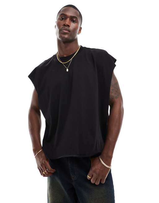 ASOS DESIGN - T-shirt senza maniche pesante oversize nera con bordi grezzi