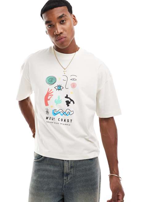 ASOS DESIGN - T-shirt squadrata bianco sporco oversize con stampa astratta frontale