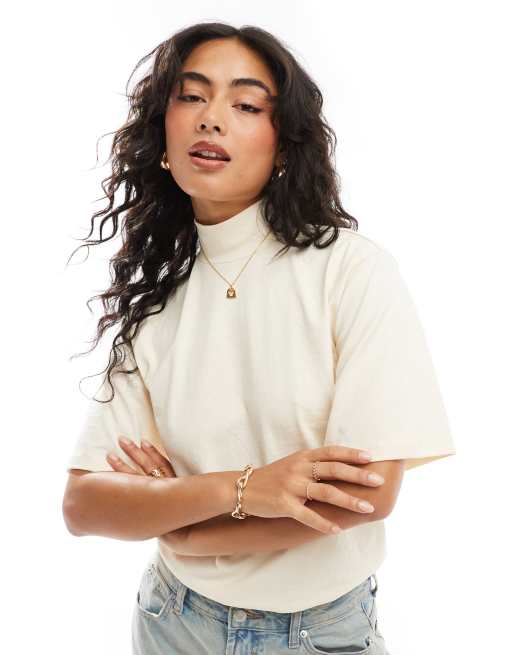 ASOS DESIGN - T-shirt squadrata écru con scollo a imbuto