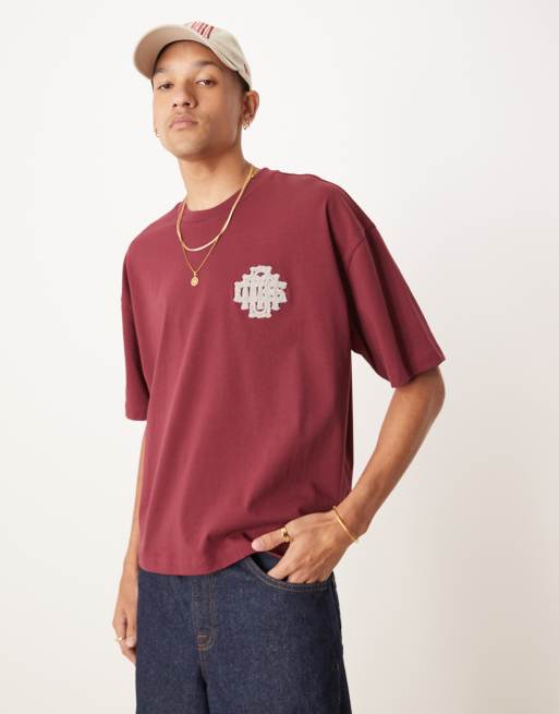 ASOS DESIGN - T-shirt squadrata oversize bordeaux con applicazione sul petto