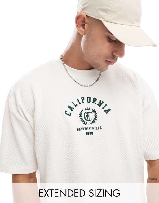 ASOS DESIGN - T-shirt squadrata oversize crema testurizzata in piqué con ricamo sul davanti