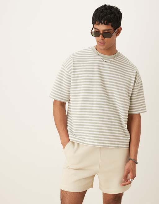 ASOS DESIGN - T-shirt squadrata oversize grigia testurizzata a righe