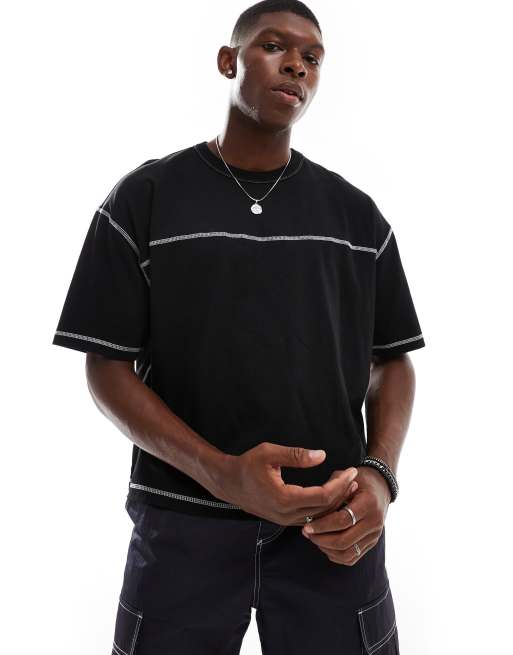 ASOS DESIGN - T-shirt squadrata oversize nera con cuciture a contrasto