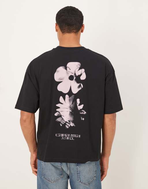ASOS DESIGN - T-shirt squadrata oversize nera con grafica floreale