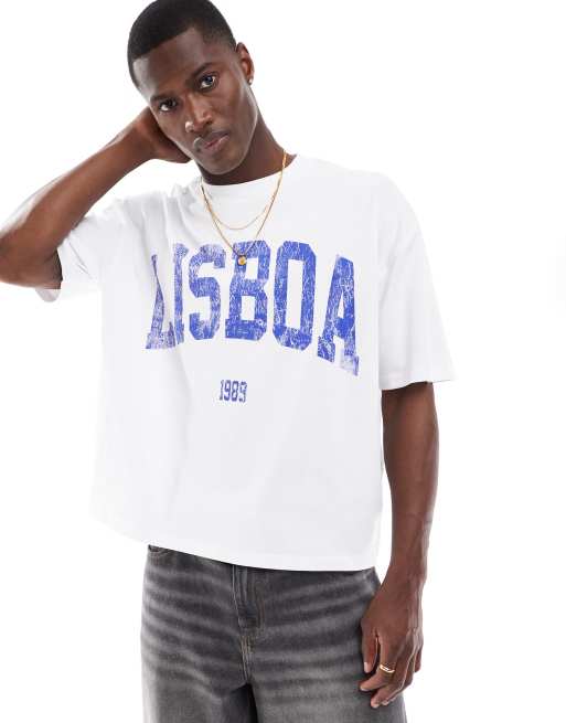 ASOS DESIGN - T-shirt squadrata oversize pesante da 240 gsm bianca con stampa sul petto