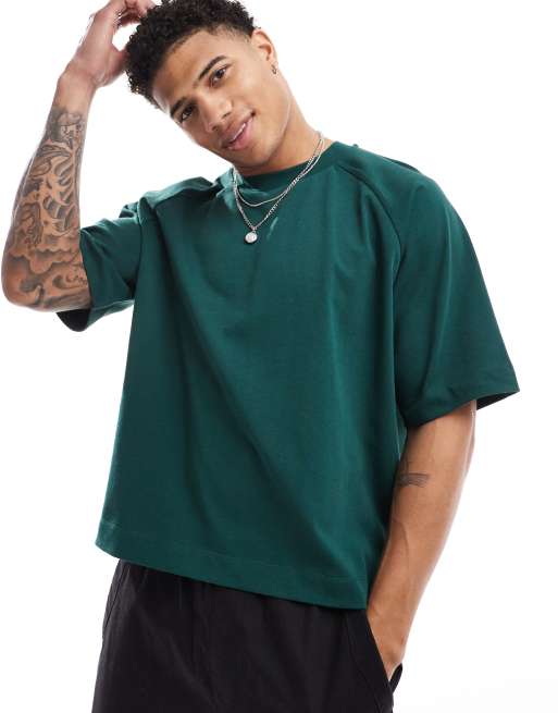 ASOS DESIGN - T-shirt squadrata oversize verde scuro con maniche raglan