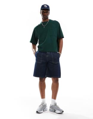 ASOS DESIGN - T-shirt squadrata oversize verde scuro con tasca e maniche raglan