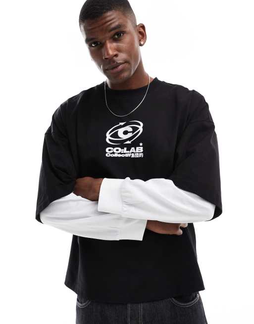 ASOS DESIGN - T-shirt squadrata super oversize nera con maniche a doppio strato