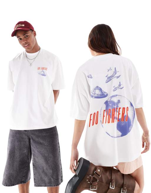 ASOS DESIGN - T-shirt unisex oversize bianca con grafiche della band "Foo Fighters" su licenza