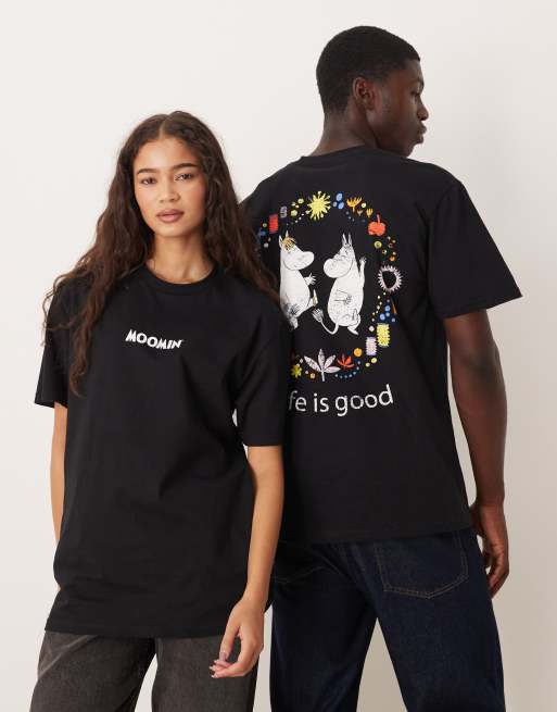 ASOS DESIGN - T-shirt unisex oversize nera con stampe "Moomin"
