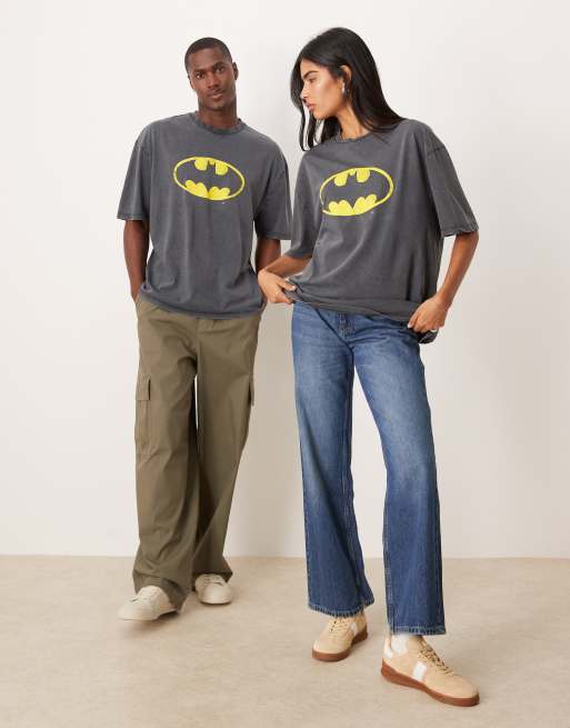 ASOS DESIGN - T-shirt unisex oversize nero slavato con stampa del logo Batman