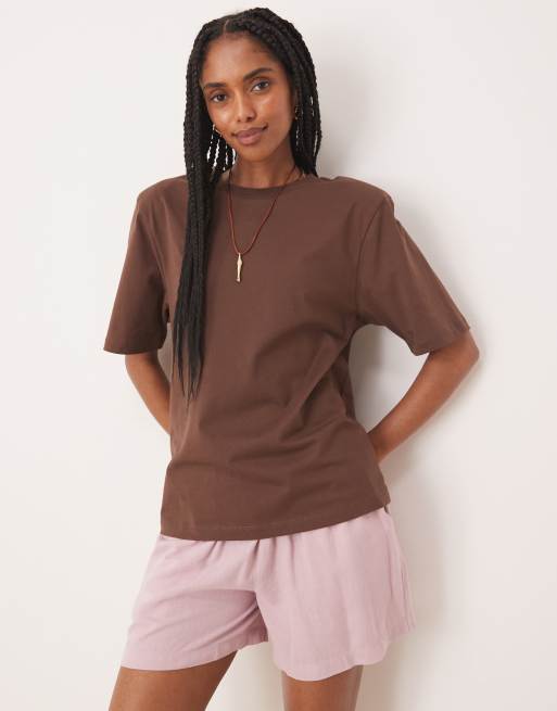 ASOS DESIGN - T-shirt vestibilità classica color cioccolato con spalline imbottite