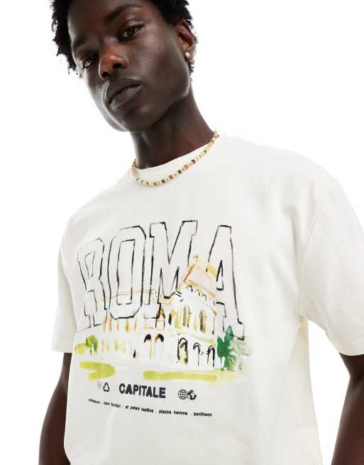 ASOS DESIGN - T-shirt vestibilità comoda bianco sporco con stampa di città sul davanti