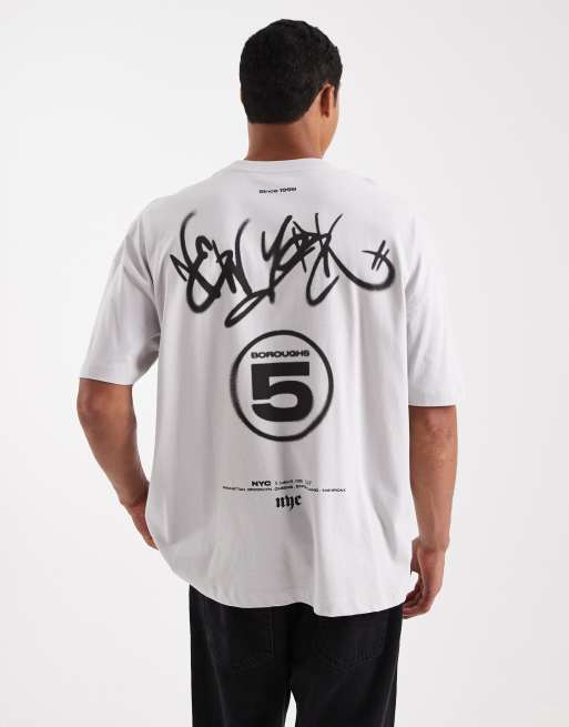 ASOS DESIGN - T-shirt vestibilità comoda grigia con spalle scese e grafica street in rilievo