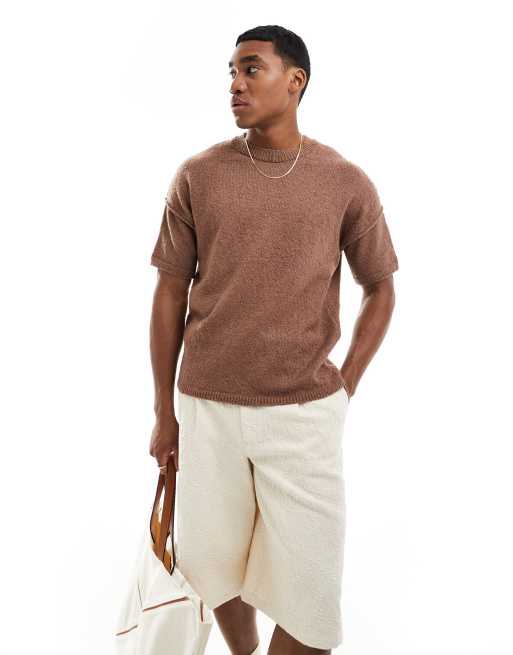 ASOS DESIGN - T-Shirt vestibilità comoda in maglia fiammata testurizzata marrone