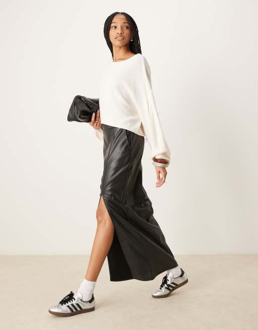 ASOS DESIGN Tall - Gonna lunga in pelle sintetica nera con spacco laterale