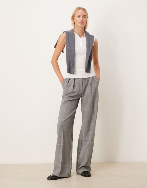 ASOS DESIGN Tall - Pantaloni a fondo ampio sartoriali con motivo a griglia con pieghe