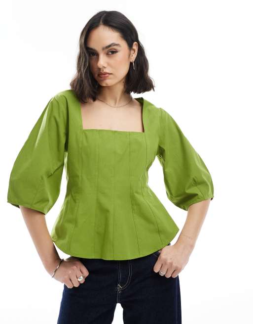ASOS DESIGN - Top a corsetto verde oliva con scollo squadrato e cuciture