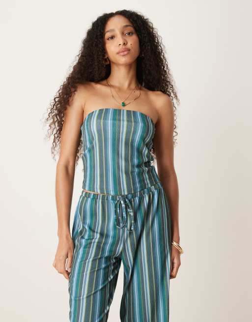 ASOS DESIGN - Top a fascia blu e verde a righe testurizzato in coordinato
