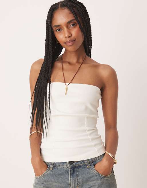 ASOS DESIGN - Top a fascia in tessuto interlock color latte di cocco