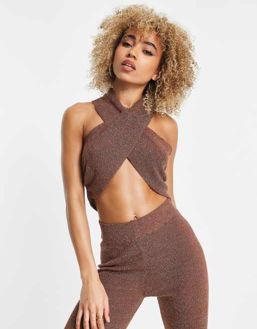 ASOS DESIGN - Top a portafoglio in filato metallizzato