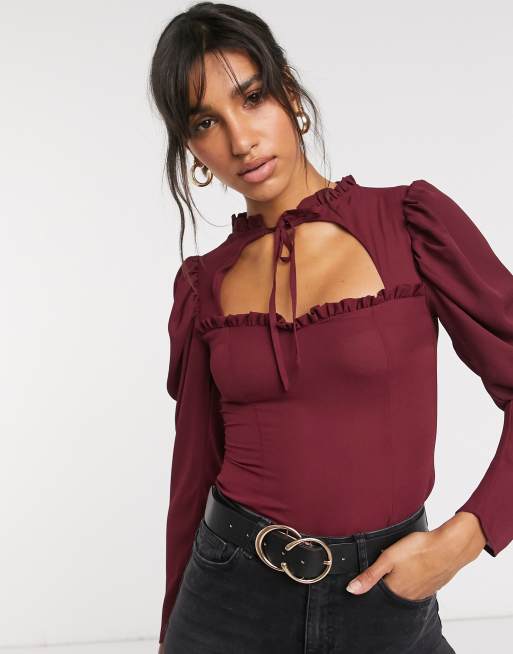 ASOS DESIGN - Top accollato con cut-out a cuore bordeaux