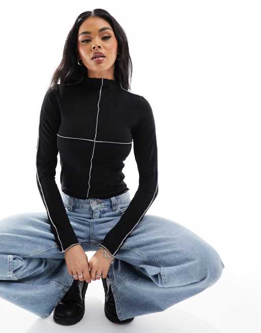 ASOS DESIGN - Top accollato nero con cuciture a vista