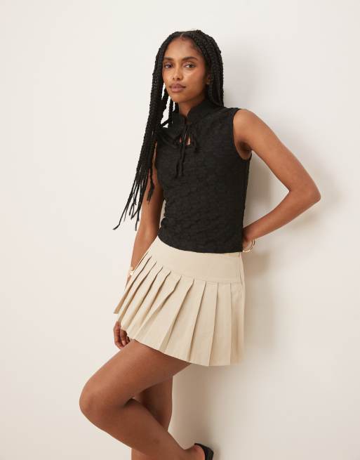 ASOS DESIGN - Top accollato nero in pizzo floreale con laccetti
