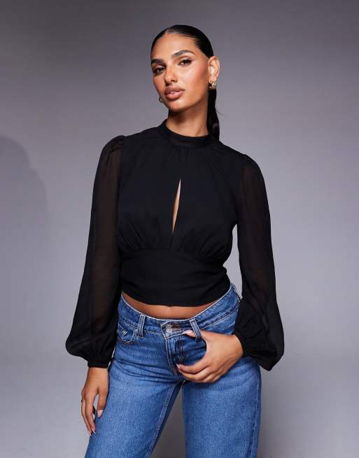 ASOS DESIGN - Top accollato stropicciato nero allacciato sul retro