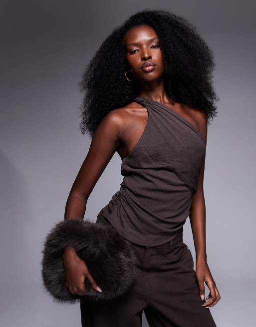 ASOS DESIGN - Top allacciato al collo color cioccolato drappeggiato e asimmetrico