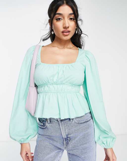 ASOS DESIGN - Top arricciato in vita a maniche lunghe verde