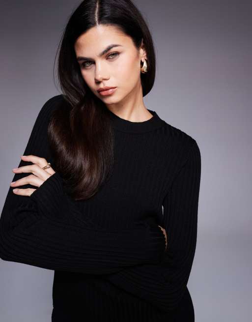 ASOS DESIGN - Top in maglia nero a coste in coordinato