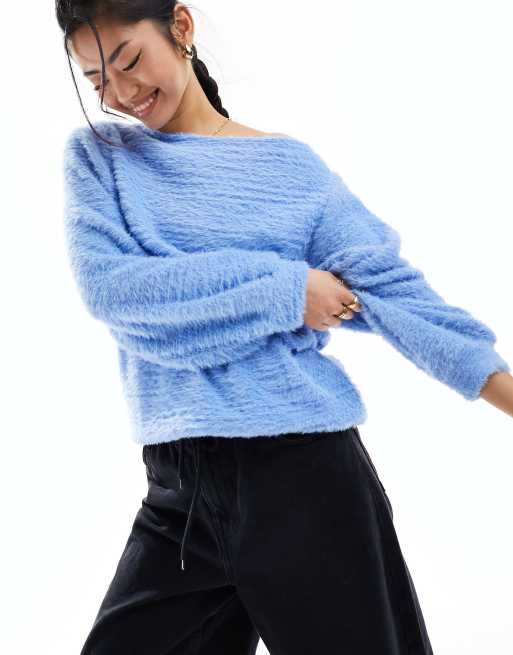 ASOS DESIGN - Top in maglia soffice blu fiordaliso con spalle scoperte