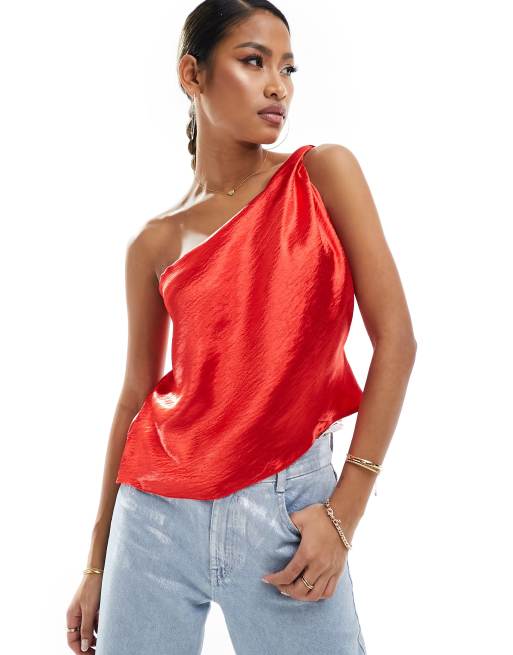 ASOS DESIGN - Top in raso rosso incrociato asimmetrico