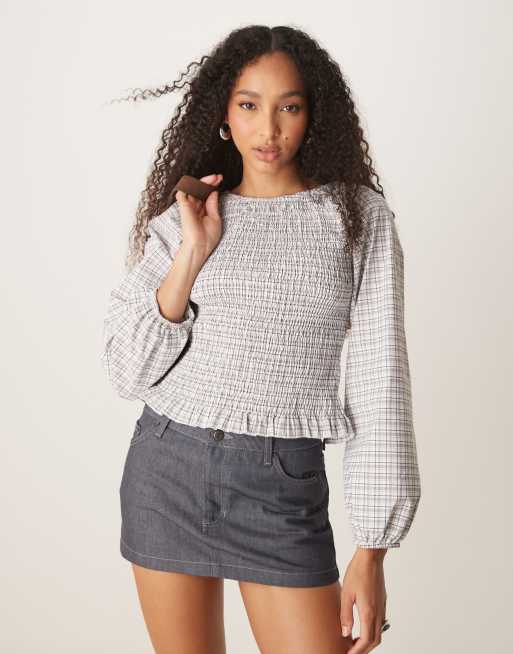 ASOS DESIGN - Top marrone a quadri arricciato