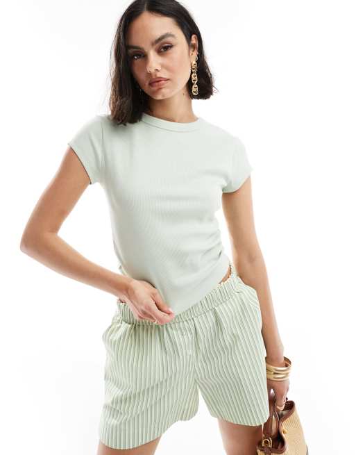 ASOS DESIGN - Top mini verde a coste con maniche ad aletta