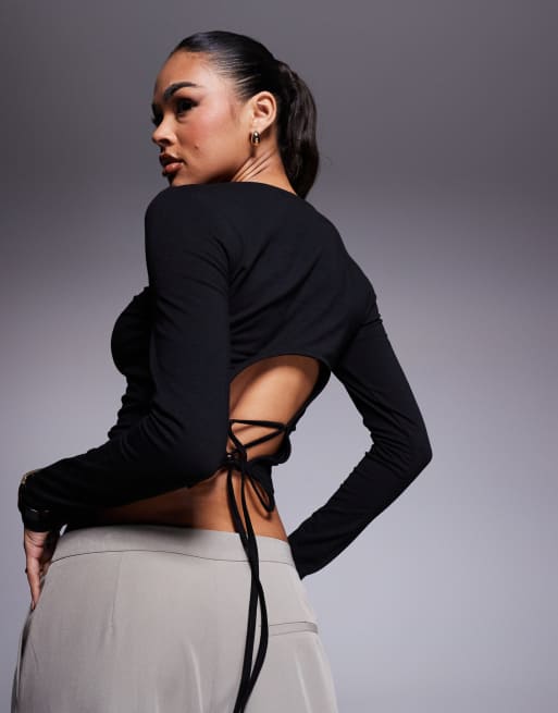 ASOS DESIGN - Top nero con scollo rotondo e allacciatura incrociata sulla schiena
