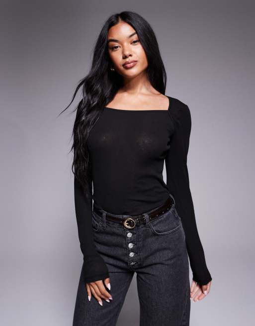 ASOS DESIGN - Top nero trasparente con scollo ampio