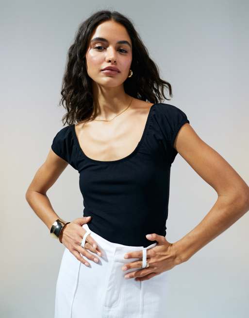 ASOS DESIGN - Top prendisole nero con maniche a sbuffo