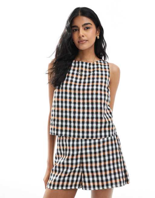 ASOS DESIGN - Top senza maniche a quadretti in coordinato