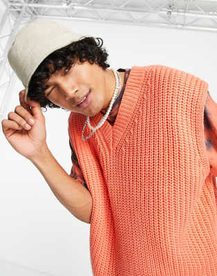 ASOS DESIGN - Top senza maniche arancione in maglia con scollo a V