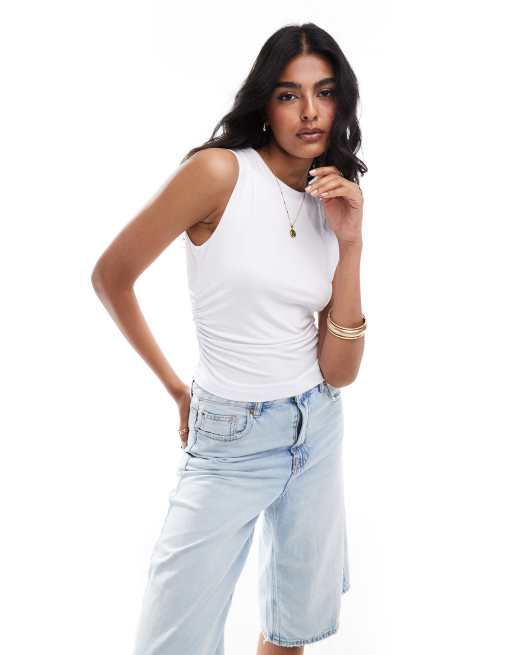 ASOS DESIGN - Top senza maniche attillato con spalle larghe bianco