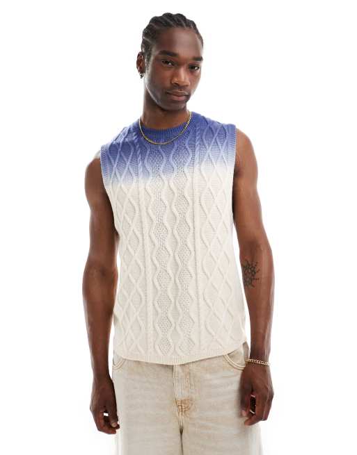 ASOS DESIGN - Top senza maniche comodo in maglia blu ed écru sfumato