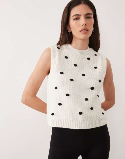 ASOS DESIGN - Top senza maniche in maglia a pois monocromatici