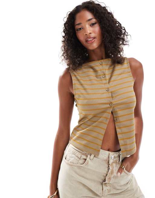 ASOS DESIGN - Top senza maniche kaki a righe con bottoni