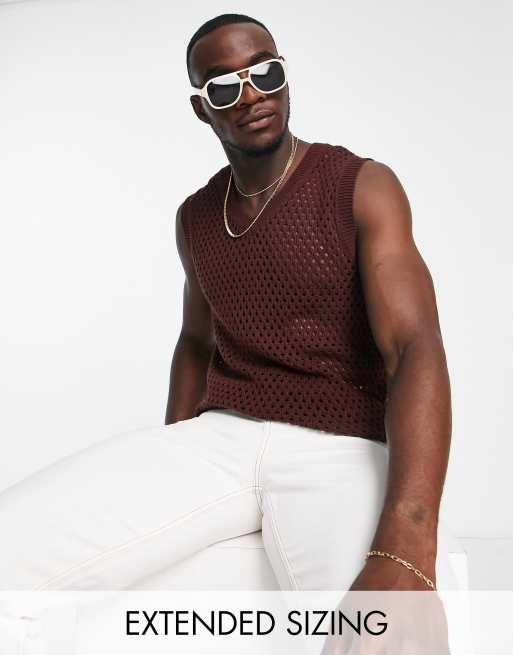 ASOS DESIGN - Top senza maniche marrone traforato con scollo a V