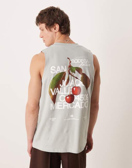 ASOS DESIGN - Top senza maniche oversize grigio con stampa di frutta