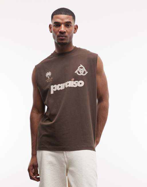 ASOS DESIGN - Top senza maniche oversize marrone con grafica stile calcio sul davanti