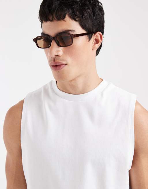 ASOS DESIGN - Top senza maniche squadrato pesante bianco