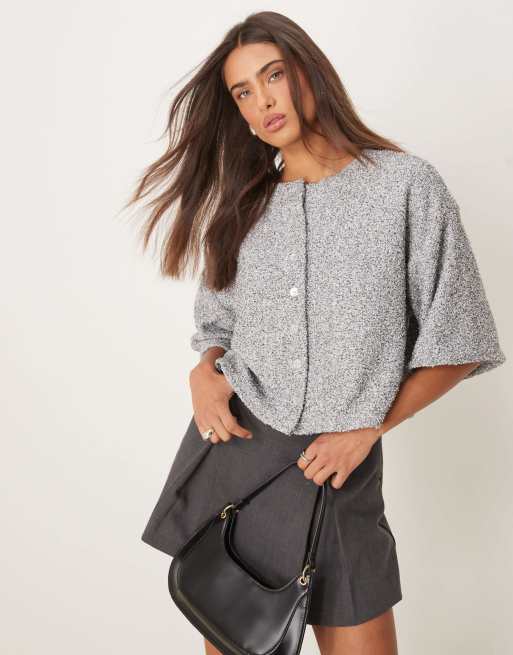 ASOS DESIGN - Top squadrato soffice color sale e pepe con spalle scese